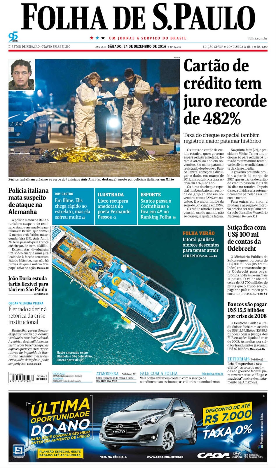 Segundo a Folha de S. Paulo em seu primeiro editorial de 2017, os principais fatos de 2016 foram: